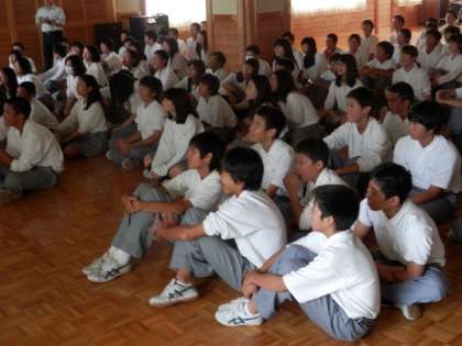 2年は5・6時間目を使ってチャレンジ体験に向けての講演会を行いました。