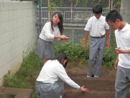 昨日2年生はチャレンジ体験講話があったので、種苗の植え付けが今日になりました。