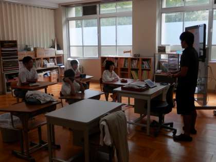 6組からは、3年生と1・2年生が別々に学習している様子です。