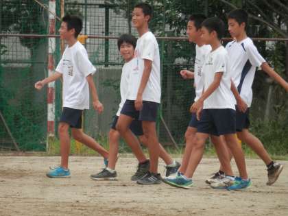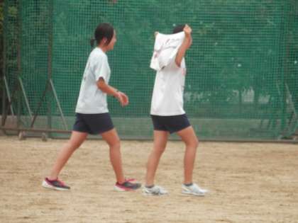 小雨がポツポツと降る中、現在グランドでは陸上部が活動中です。