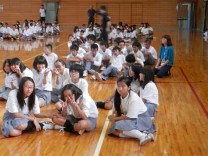 1年は、体育館に全クラスが入って当日の発表の順番に出来栄えを披露しあいました。