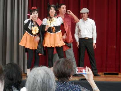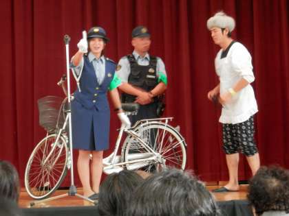 2時から鏡山小学校で「振り込め詐欺撲滅ミュージカル」が上演されるというので、PTA本部の皆さんと共に参加しました。