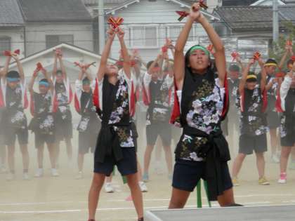 先ほど、職員室で校舎の上から撮影したビデオを見たのですが、生徒が「花山」の文字を作るように隊列を組んでいることに気づきました。