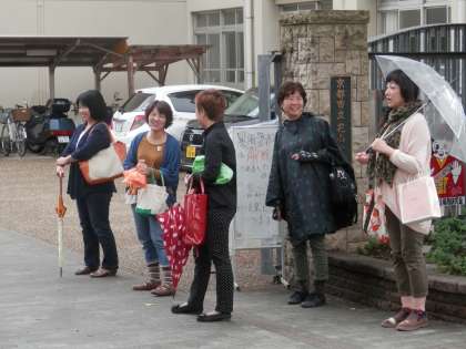 台風の影響で、爽やかな朝とはいきませんが、PTA本部役員の皆様方は「さわやかマンデー」の取組にやってきてくださいました。