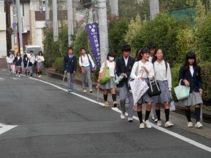 10時から30分間、校門付近で、登校する小中学生と爽やかなあいさつを交わし合いました。