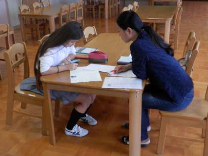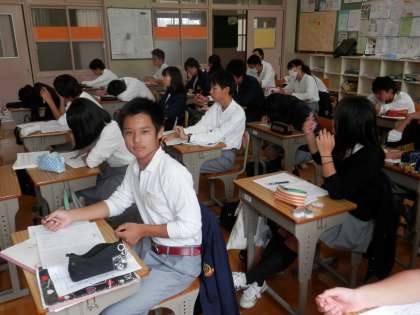 3年からは、エヴァさんの日本語学習と国語、それに英語の時間の様子です。英語の時間には、何やら取組がなされているのか、とても楽しそうな雰囲気がありました。