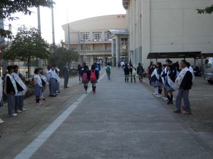 今朝から校門で生徒会役員選挙に立候補している生徒たちが、知名度を上げるために活動を始めました。