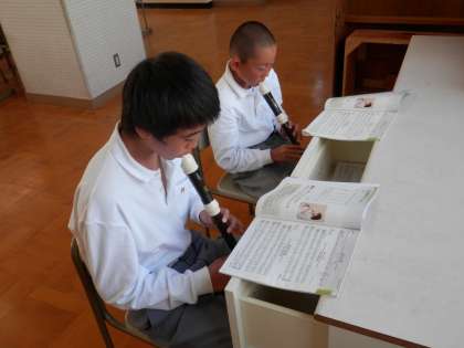 音楽の時間、どうやらアルトリコーダーのテストのようです。