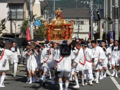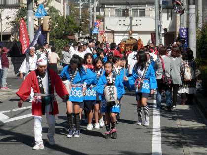 境内を出た神輿は、約30分後に本校の前を通ります。先回りして待ちました。