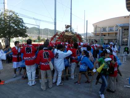 子ども神輿は本校の前で休憩をし、トイレなどを済ませます。