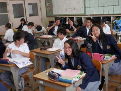 既に課題をやり終えた人たちがカメラを意識しています。「コラッ!」