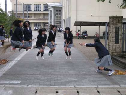 校門付近の掃除をしてくれている吹奏楽部の人たち。