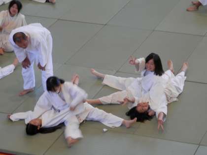英語はいつもの通り、先生と生徒との活発なやりとりが行われ、体育では柔道が行われていました。今日は寝技に取り組んでいるようでした。
