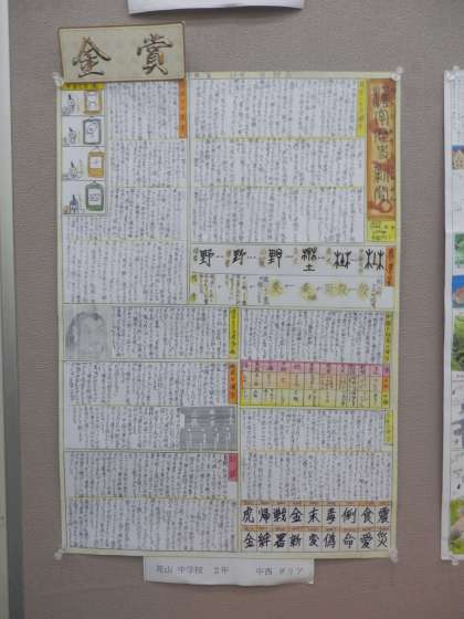 中学校総合文化祭の「新聞コンクール」に出品した作品のうち、先ずは2年の中西ダリアさんが金賞を、木下梨由希さんが銀賞を獲得しました。
