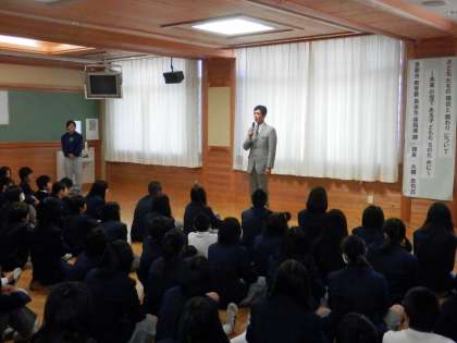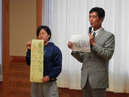 花山中の生徒としての自覚と責任をもって臨んでほしいという話の後、いつもの通り「職場でいきるあ・へ・こ・じ・え」の話をしました。