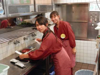 銭湯は掃除が終わって休憩中、飲食店はご飯時でごった返していました。