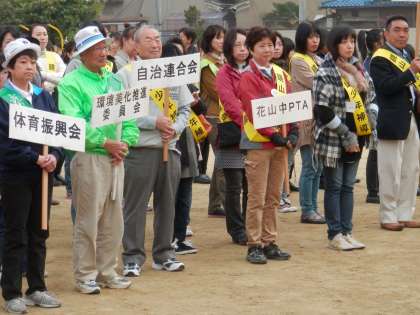 9時30分からは、鏡山学区少年補導委員会と鏡山学区自治連合会が主催する「青少年健全育成パレード」が開催されました。