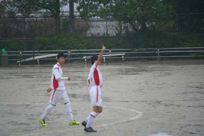 先制ゴールから、約5分後、キャプテンの放ったミドルシュートがキーパーの頭上を越えてゴールに突き刺さりました。