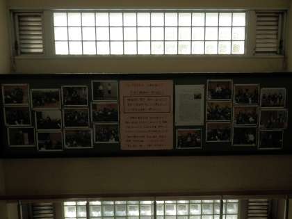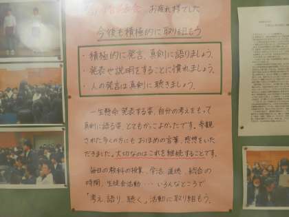 1階から2階への階段の踊り場に、先日の「学習発表会」に関する掲示物が貼ってあります。