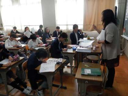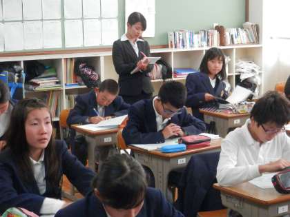 英語の時間には、学生ボランティアさんが入ってくれています。