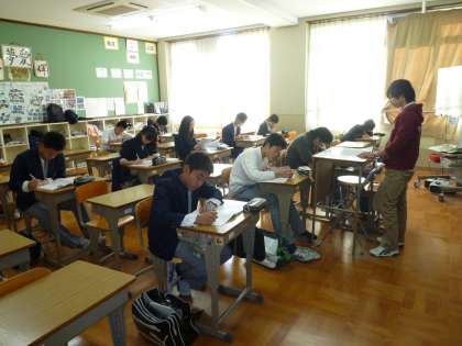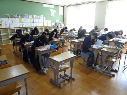 先週から始まった土曜学習会ですが,今日も約60名の生徒が3年生の教室3部屋に分かれて,自学自習に励んでいます。たいへん,集中をして取り組んでいる様子がうかがえます。がんばれ3年生。