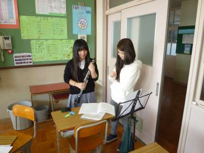 パートごとの練習ですが,外部から講師の先生を招いて,個人レッスンに励むパートもあります。がんばれ吹奏楽部。