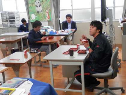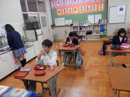 食べた人からお箸を洗ったり歯磨きをしたり…、それぞれのペースで進めます。