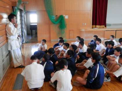 女子のところへ行くと、一斉にカメラの前に集まります。(授業開始前です)