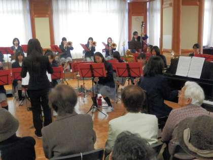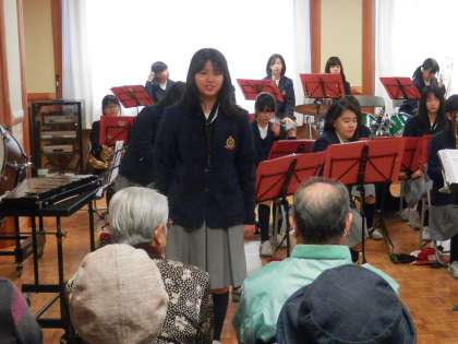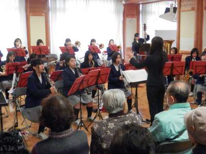 鏡山学区の「健康健やか学級」、毎年11月は本校で行われ、吹奏楽部とのふれあいが企画されています。
