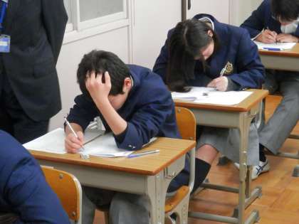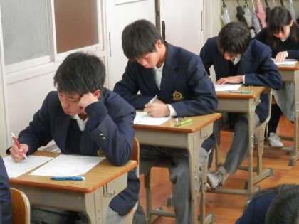 教育委員会生徒指導課の大曾根主事が来られ、テストを受ける様子を見せて欲しいということでしたので、一緒に各教室を回りました。