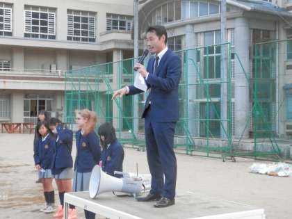 赤い先生からの話の後、いよいよ校外へ向けて出発です。