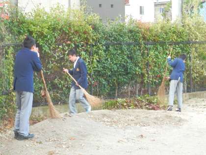 6組の人たちも学校に残って校舎周りの清掃活動に精を出します。