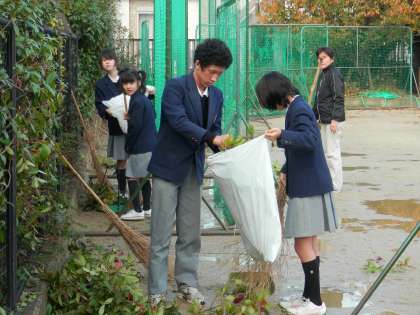 早く帰ってきた3年生は、豚汁を食べ始めました。