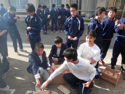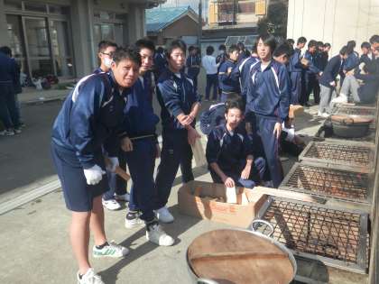 女子は調理、男子は畑作業とかまどの番。どの学年でも同じです。