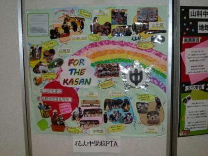PTAフェスティバルといえばPTAの壁新聞です。花山中・鏡山小・陵ヶ岡小の壁新聞ですが,それぞれに趣向をこらした力作ぞろいです。