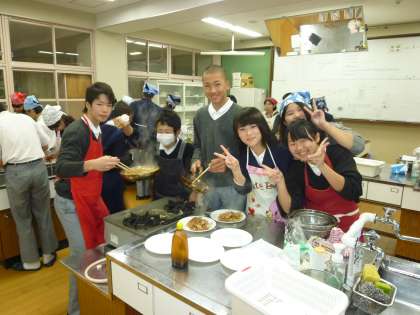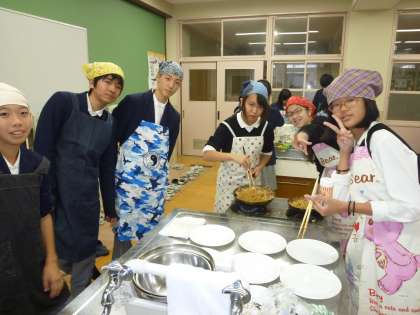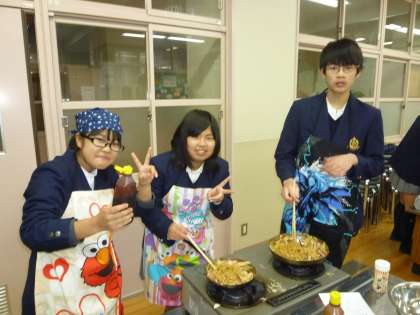 3限に理科の授業でいかの解剖を終えた2年1組は,そのいかを使って調理実習でいか焼きそばを作りました。