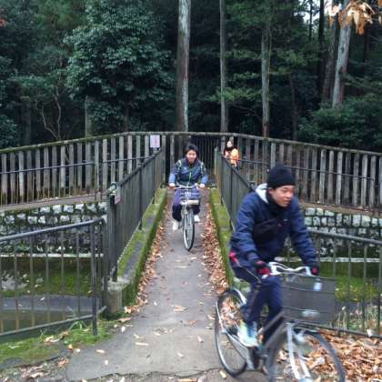 自転車で伴奏している高橋・井坂先生コンビが先ずは坂元会長のカメラに収まりました。