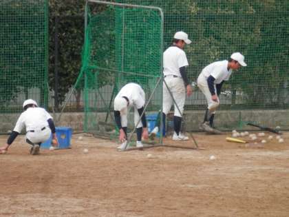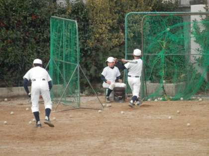 寒風が吹くグランドでは野球部が熱心に練習をしています。