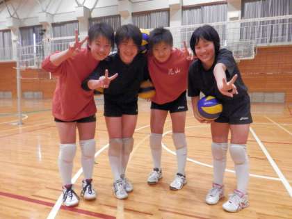 体育館では、女子バレー部が今日も4人で熱心に練習に励んでいました。