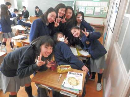 授業が終わったばかりの教室では、担当の先生に質問をしたり、楽しく会話をしたりして過ごしています。