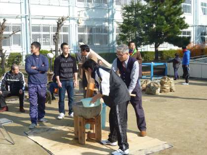 本日(12/21)10:00より陵ヶ岡小学校にて陵ヶ岡学区の「ふれあいもちつき大会」が行われました。