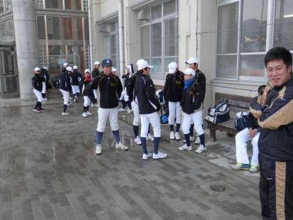 体育館では女子バレー部が準備運動をしており、グランドでは多くの部が校外へランニングへ行く用意をしていました。野球部は例年通り「球技の神様」と言われる白峯神社まで往復18キロのランニングです。