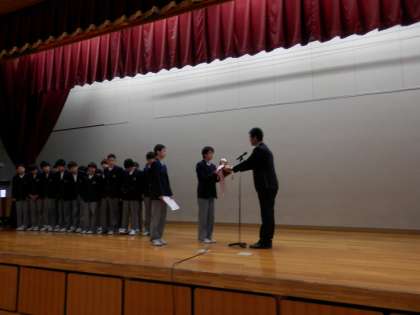 先ずは、冬休みに行われた大会やコンクールの表彰からです。
