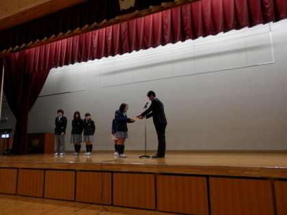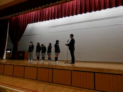 次に、英語検定(英検)で優秀な急にパスした人に認定書を伝達授与しました。