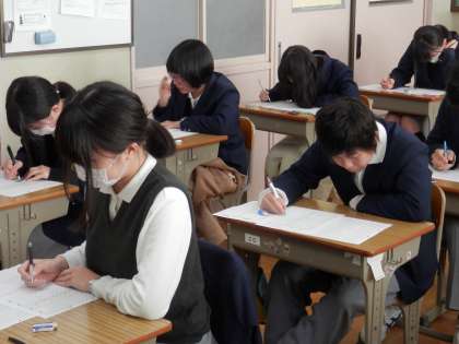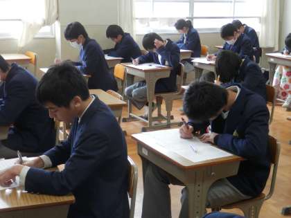 3年生は、課題テストに取り組んでいました。流石に入試に直結しているだけあって、表情は真剣そのもの。