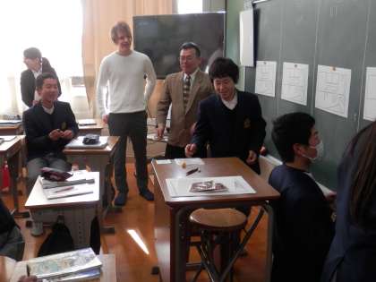 何やら楽しそうな雰囲気の教室があったので入ってみると、ALTの先生を交えて英語の伝言ゲームをしていました。