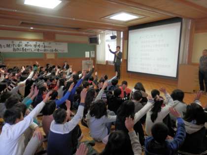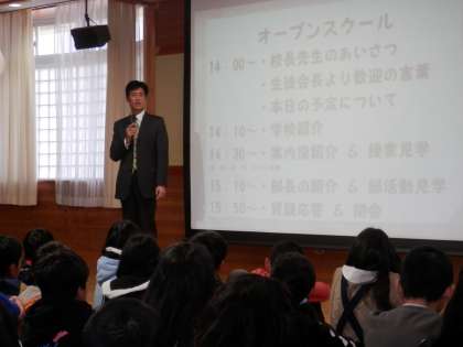 2時から、鏡山・陵ヶ岡両小学校の6年生を招いて「OPEN SCHOOL」を行いました。
