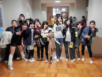 バレー部の参観者たちは、カメラの前でポーズを構える2年生に影響されて集合写真を撮りました。