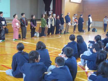 今日から4回、総合的な学習の時間に1年生を対象に「文化体験の時間」が始まります。今日は、それに先立って開講式を行いました。