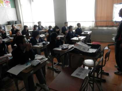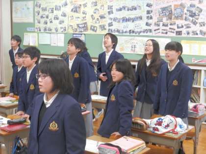 英語の時間からは、学習した内容をみんなで声に出して復習しているところです。